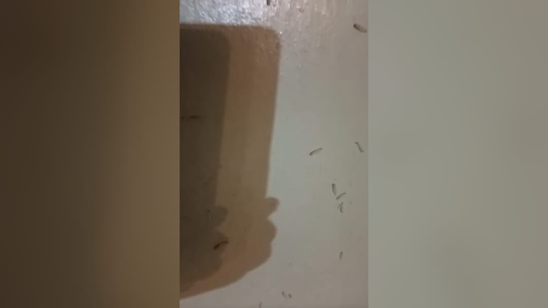 Dalam rekaman durasi 38 detik, dapa lia tumpukan sisa makanan, lante pono deng kulit wortel yang talamburang, deng ada belatung maraya di dinding dapor.