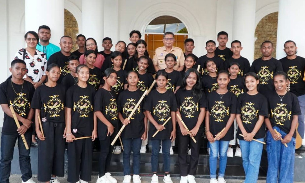 AmbonVibes.com — Kintal Balai Kota Ambon sore tadi Selasa (21/10/2025), pono deng suara merdu Paduan Orkestra Suling-Bambu dari Telutih, Kabupaten Maluku Tengah. Anana kacupeng yang pung bakat musik ini dapa tarima langsung dar Wali Kota Ambon Bodewin Wattimena.