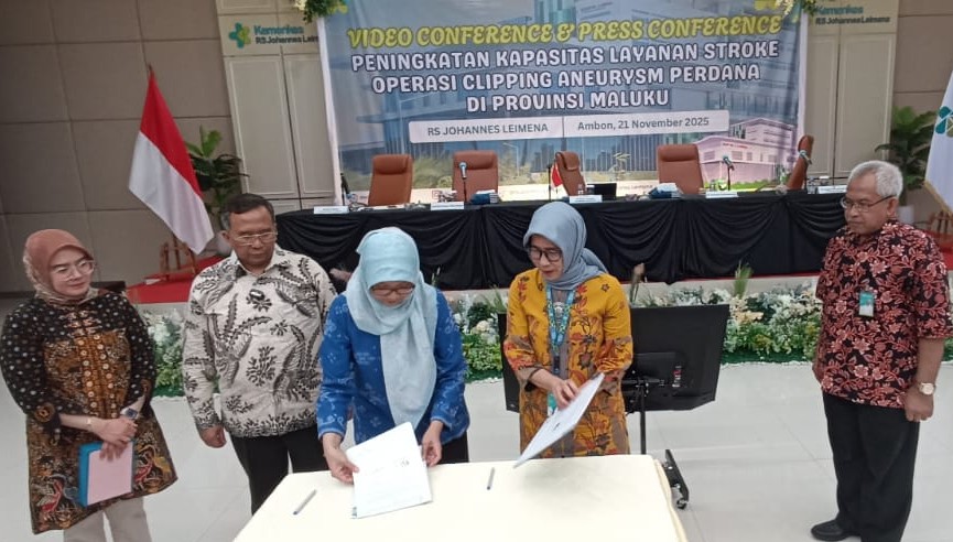 Prestasi bersejarah ini dapa tau waktu konferensi pers tentang peningkatan kapasitas layanan stroke di Ballroom lantai 4 RSUP Leimena, Jumat (21/11/2025).