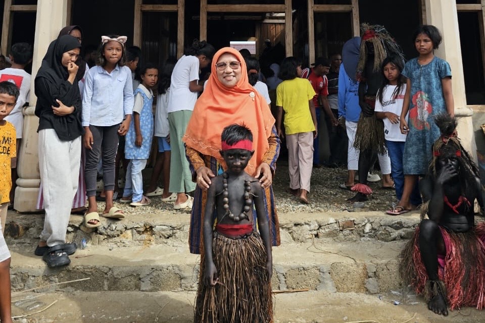 “Beta mo angka atap kadua,” ujar Saadiah, sabage simbol kasiapan par iko dalang ritual adat.