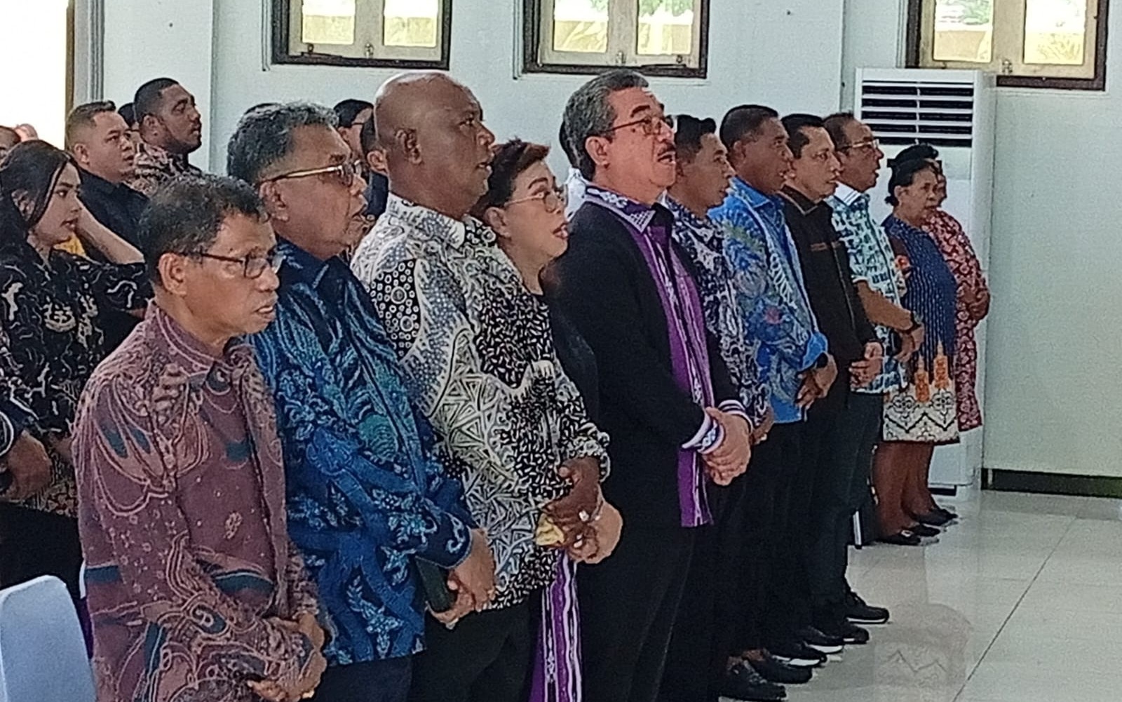 “Beta badiri di sini bukang cuma sabagai Gubernur Maluku, mar sabagai warga gereja deng sudara seiman,” katanya.