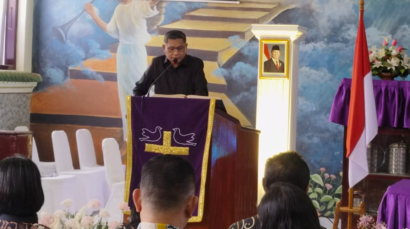 Dalang sambutan, Wali Kota Bodewin Wattimena tekankan penting paskali kolaborasi pemerintah deng gereja par biking bae kualitas sumber daya manusia, deng jawab barbagai tantangan sosial ekonomi di Kota Ambon.
