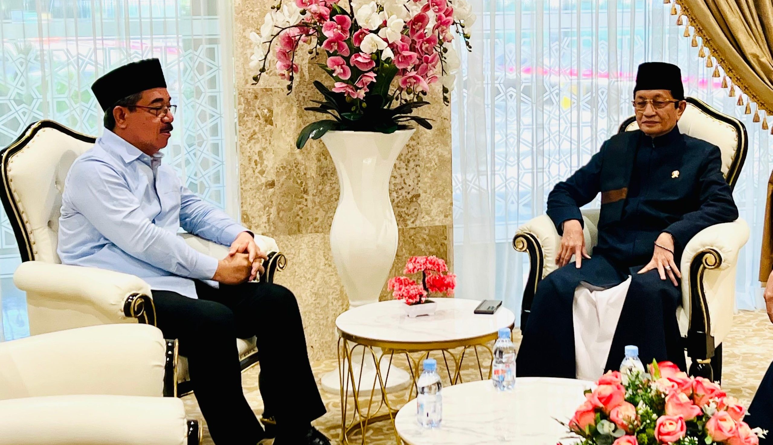 Gubernur sampe di kompleks Masjid Istiqlal pagi hari, langsung dapa sambut dar Menteri Agama di Kantor Pangalola Masjid. Suasana partamuan barlangsung hangat deng akrab paskali.
