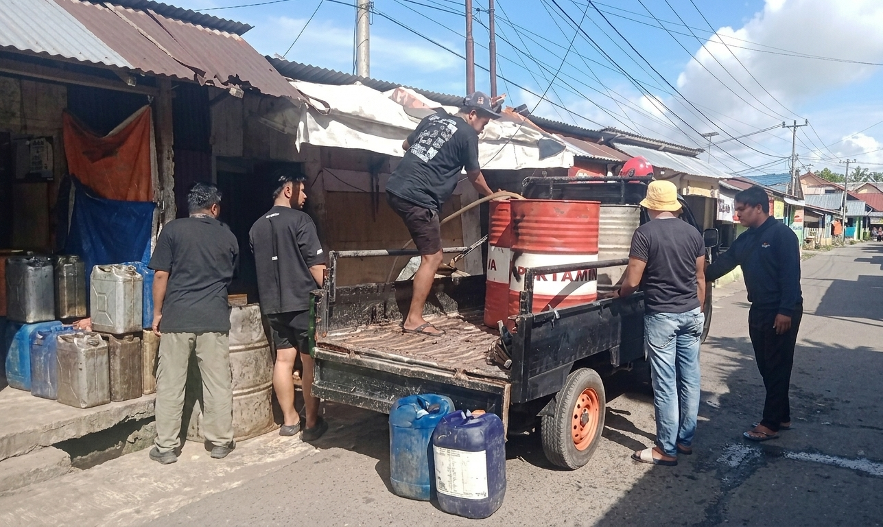 Polisi duga akang praktik ilegal takait deng pangoplosan BBM subsidi, yakni campor minya tana dent solar par dong jual-bali akang.
